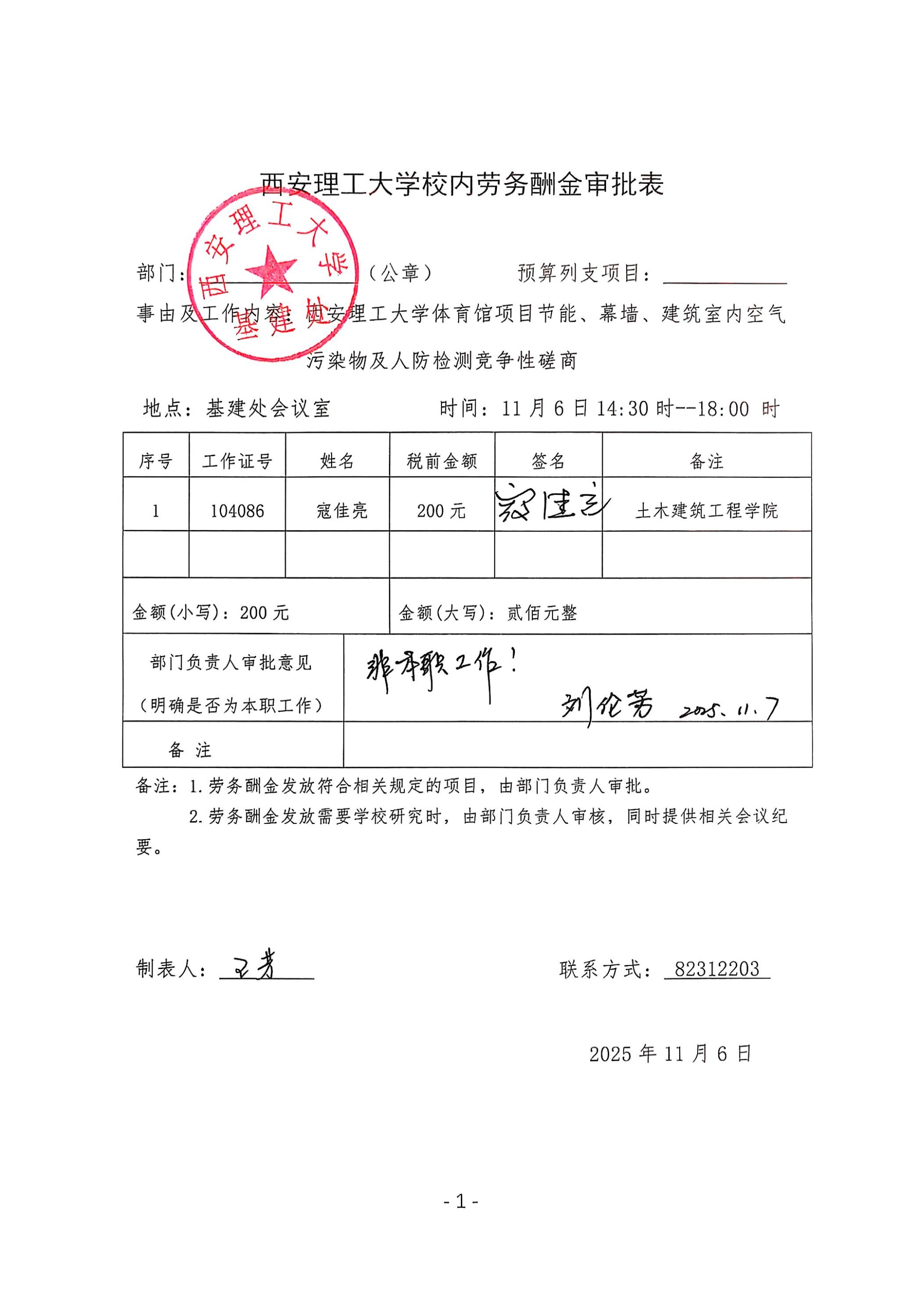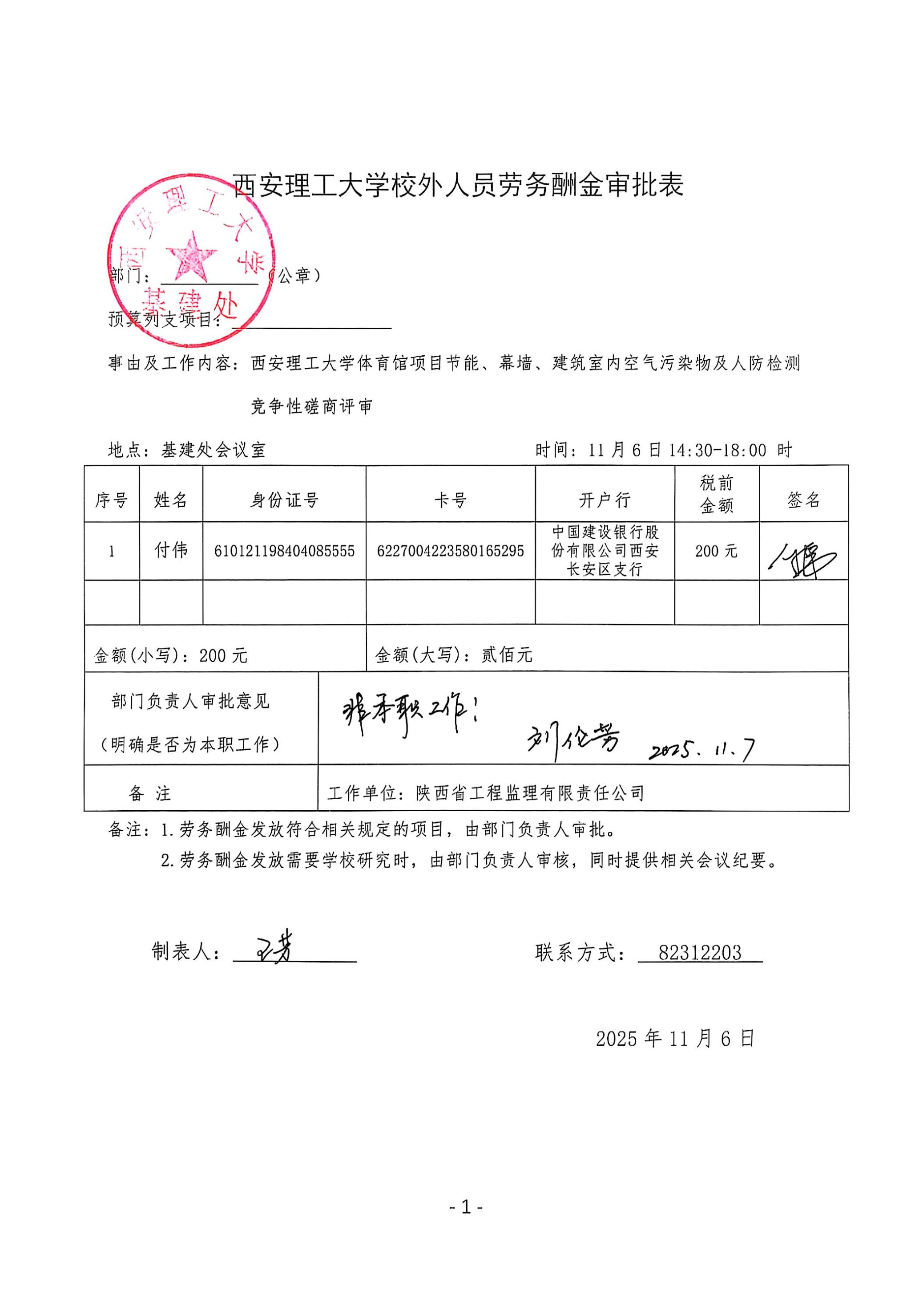 西安理工大学体育馆项目节能、幕墙、建筑室内空气污染物及人防检测竞争性磋商评审酬金的公示